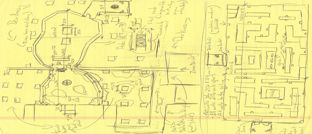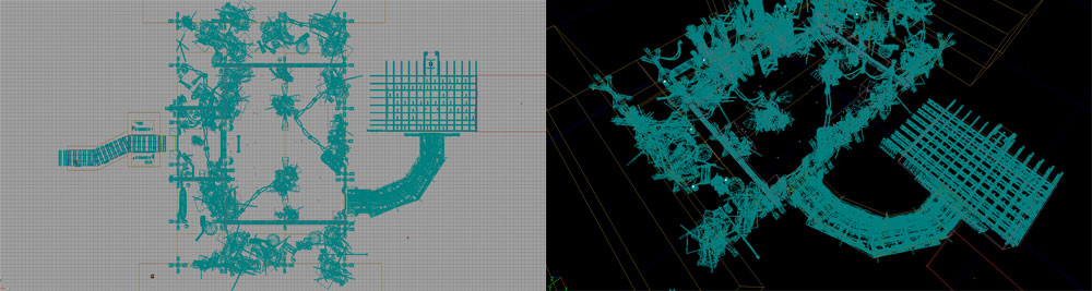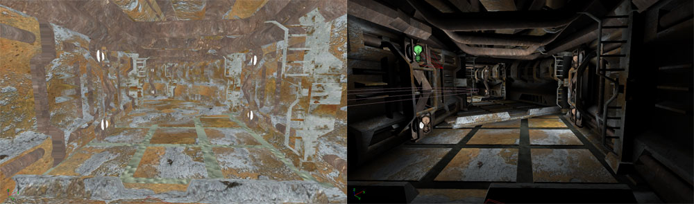Layout Process ![]() Nameless was a UT2004 mod project based on the movie The Running Man. In the mod the player is a nameless contestant in a game show in which he is placed in various situations where he must fight for his life in order to move on to the next area/arena. The game show is rigged of course as the enemies he faces are much better equipped than the player. In the game however the player manages to get past all of the arenas as well as find a way back into the city. Once in the city he makes his way back to the TV show to supposedly face the host and creator of the game. What the player doesn’t know is that he is a plant from the resistance movement whose plan (albeit a desperate one) was to use the show to broadcast their anti-government message and hopefully inspire the citizens to rise up. The layout for District 5 was created by myself and two of my teammates Dominic Lucidon and Stephen Kottle. My task was to build the District 5 map. In the map our programmer had created new behavior for the bots and a weapon that pushed the enemies back like an air gun so that in the first arena the player’s objective was to throw the NPC fighters into exploding crates and other environment objects to damage them and eventually kill them. After this area the player entered a maze which was filled with stealth robots. In this arena the player was given a short range sonar device which would give the approximate location of the robots which he had to find and destroy using only a cattle prod type weapon. How stealthy the player was an important factor in this area. After completing this arena the player would go through a door which would load the next map consisting of a driving area which was built by Dominic Lucidon member and me. Building Process ![]() The actual building process for this map was fairly straight forward. The difference from other maps is that the game play and enemy bot behavior was constantly evolving and changing thus the layout and scale of the map had to be changed a number of times. Paths that worked in one layout and build may not work with the new bot behavior thus pathnodes and mesh placement were always being adjusted. In the end the majority of the changes dealt with the first arena as this was the most open and the space where the enemy bots needed the most room to move around and dodge the players actions. Also collision in this map was tricky as there are lots of static meshes with odd shapes. Thus new collisions were used instead of the mesh default ones to help with frame rate and to keep the player from getting stuck. The mesh placement also called for many models to be used despite the map as a whole being somewhat small. This was necessary since the run down location of the first fighting area needed to look old, rusty and cluttered since it was located in the lower slum like portion of the city. Therefore lots of them needed to be stacked up and placed on top and within others. Lighting Process ![]() The lighting process for this map was somewhat difficult as the map relied more on static meshes to give it shape rather than BSP. Because some meshes can take light differently than others (even in the same area or next too) a lot of shuffling around and special lights were required as well as using some of the ambient properties of the meshes themselves. Also to light the area from the lamp posts required some tweaking to better blend in with the new positions of the meshes and some of their ambient settings. In the end about five light actors were used for each post at various radiuses and brightness settings to capture the cone shape this type of light source would produce especially on the floor where the concentration of the light would be. Final Steps ![]() The final steps of this map consisted of lots of testing both by members of the team and others. The last step was adding the final enemies and checking (and tweaking) how they would be presented and if they continued to react to the player as we wanted them too. After this map we concentrated on the driving area which was already under way by myself and Dominic Lucidon. |